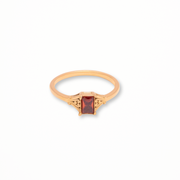 This ring is inspired by the heat of the Arizona desert. Mounted with a Garnet stone, this stone has the virtues of restoring energy, joy and the strength to live.
